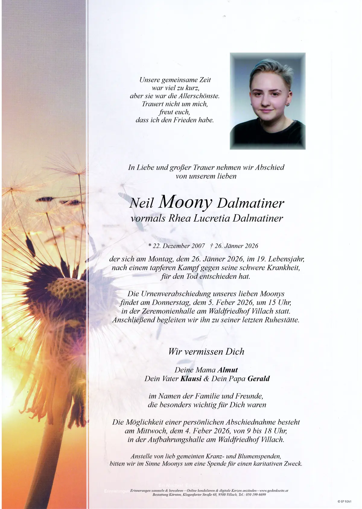 Moony hieß offiziell eigentlich Neil, weil der Standesbeamte in Villach Moony nicht erlaubt hat.